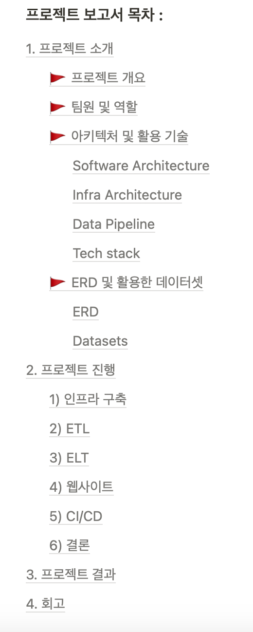 일단 목차를 구성하고 상세한 내용은 각 담당자가 1차로 작성하기로 했다. 그 후에 팀원들이 서로 내용을 확인해주기로 했다.